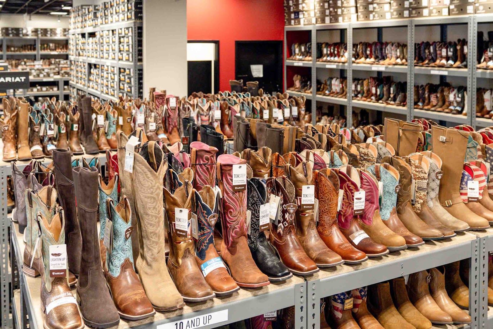 Ariat Outlet specializes in high-quality western boots, apparel, and footwear with a focus on expert customer service and a well-curated selection. Shoppers can expect personalized assistance, in-store pickup, delivery options, and knowledgeable staff ready to help with sizing and product care advice.