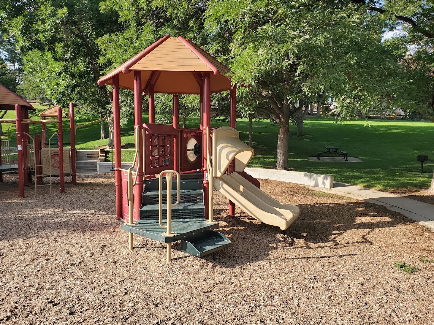 Visitors appreciate the park's engaging beginner to intermediate trails and fun wooden features like teeter totters and seesaws. Families and newcomers find it welcoming. Some note periodic maintenance needs and goathead plants causing flats.