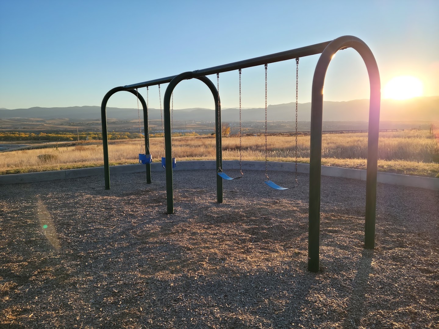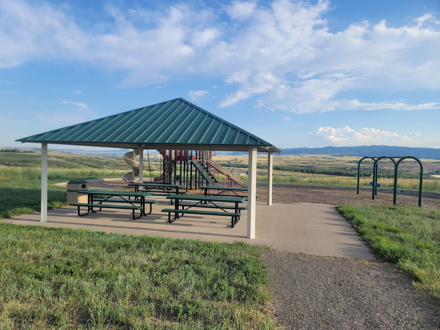 Visitors appreciate Chatfield East Park as a hidden gem with a clean, well-maintained playground and expansive scenic views. The covered gazebo and picnic tables provide a great spot for gatherings. Lack of public restrooms is noted but does not detract from the overall positive experience.
