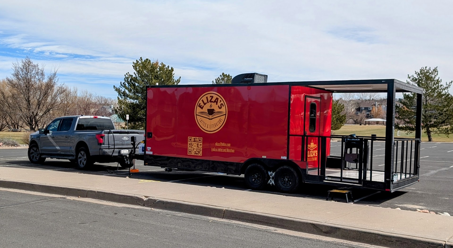 Eliza's Lattes & Literature is a charming mobile coffee shop that serves expertly crafted espresso-based drinks alongside a unique selection of indie books. The setup offers quick counter service, an electric-powered truck ensuring a quiet atmosphere, and outdoor seating perfect for morning stops and light browsing.