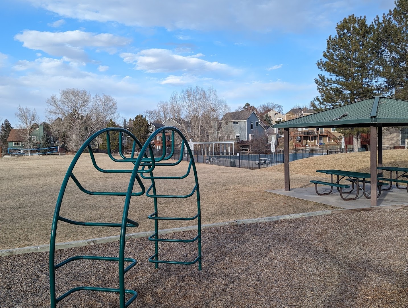 Hidden River Playground in Parker offers a simple local playground featuring slides and play structures set on bark ground cover. Visitors can expect a family-friendly environment primarily used for day play without formal picnic shelters or water access.