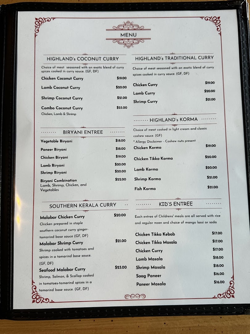 Highlands Indian Cuisine offers authentic Indian dishes with a focus on flavorful curries, fresh naan, and accommodating service. Guests can enjoy casual dining or takeout with gluten-free and vegetarian options clearly labeled on their menu.
