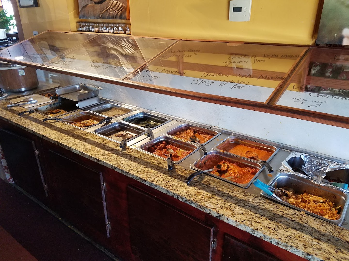 Lunch Buffet, Chicken Tikka Masala, Samosas, Chicken Korma, Goat Curry, Saag, Meatballs, Vindaloo, Gluten-Free Options, Vegan Options, Halal Food, Small Plates, Happy Hour Drinks, Tea Selection