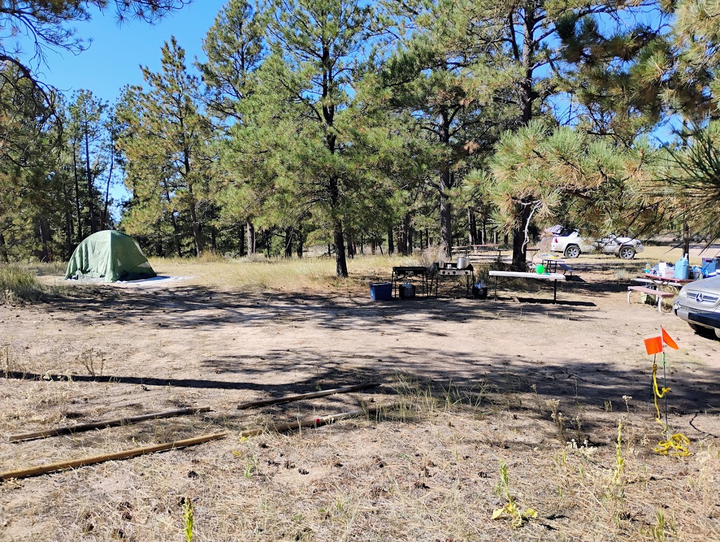 🏕️ Ample campsites with picnic tables and pit toilets