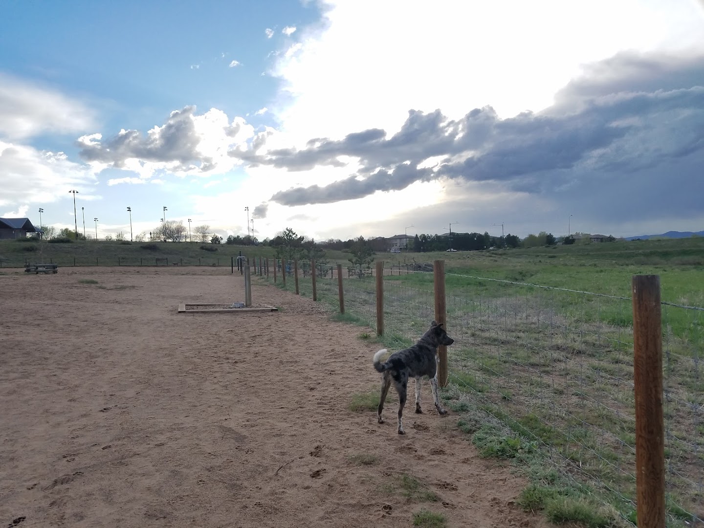 Rover's Run at Redstone Park offers a large, sandy terrain ideal for dogs to run and socialize without mud issues. Amenities include water stations, shaded picnic tables, and a nearby playground, making it a favored spot for dog owners in Highlands Ranch.