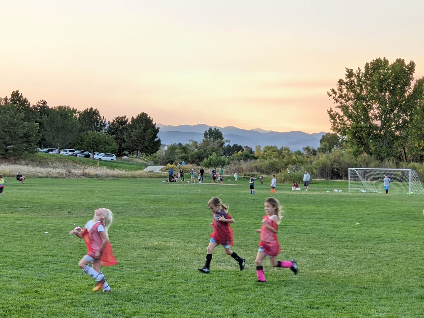 Spring Gulch Park in Highlands Ranch offers a spacious community green space featuring a shaded playground, basketball court, picnic shelters, and open grassy fields. Visitors enjoy well-maintained trails, a public restroom, barbecue grills, and dog-friendly amenities, making it ideal for families and casual outdoor activities.
