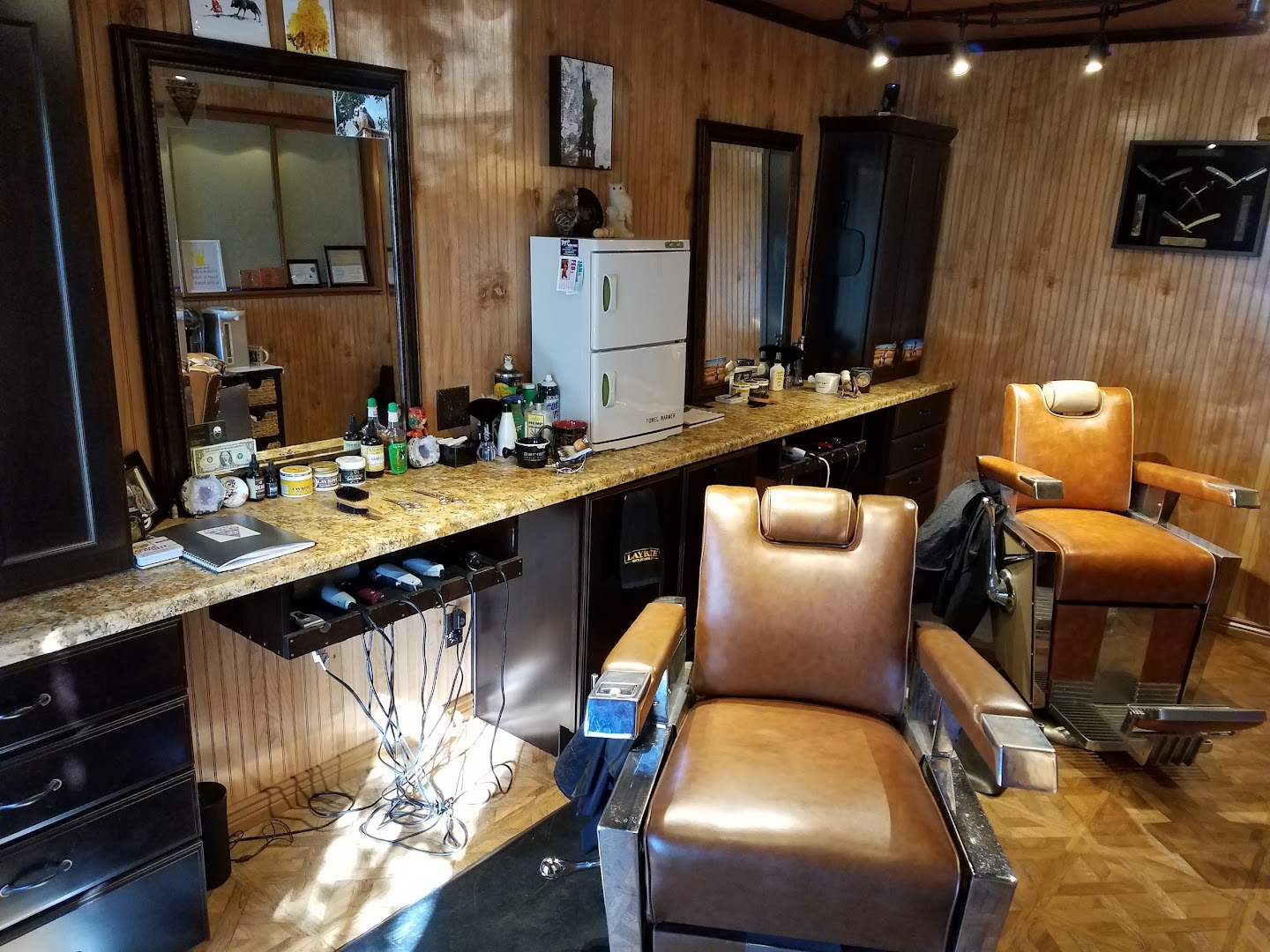 The Owl's Nest Barber Shop specializes in classic barbering services such as haircuts, beard trims, straight razor shaves, and design work.
