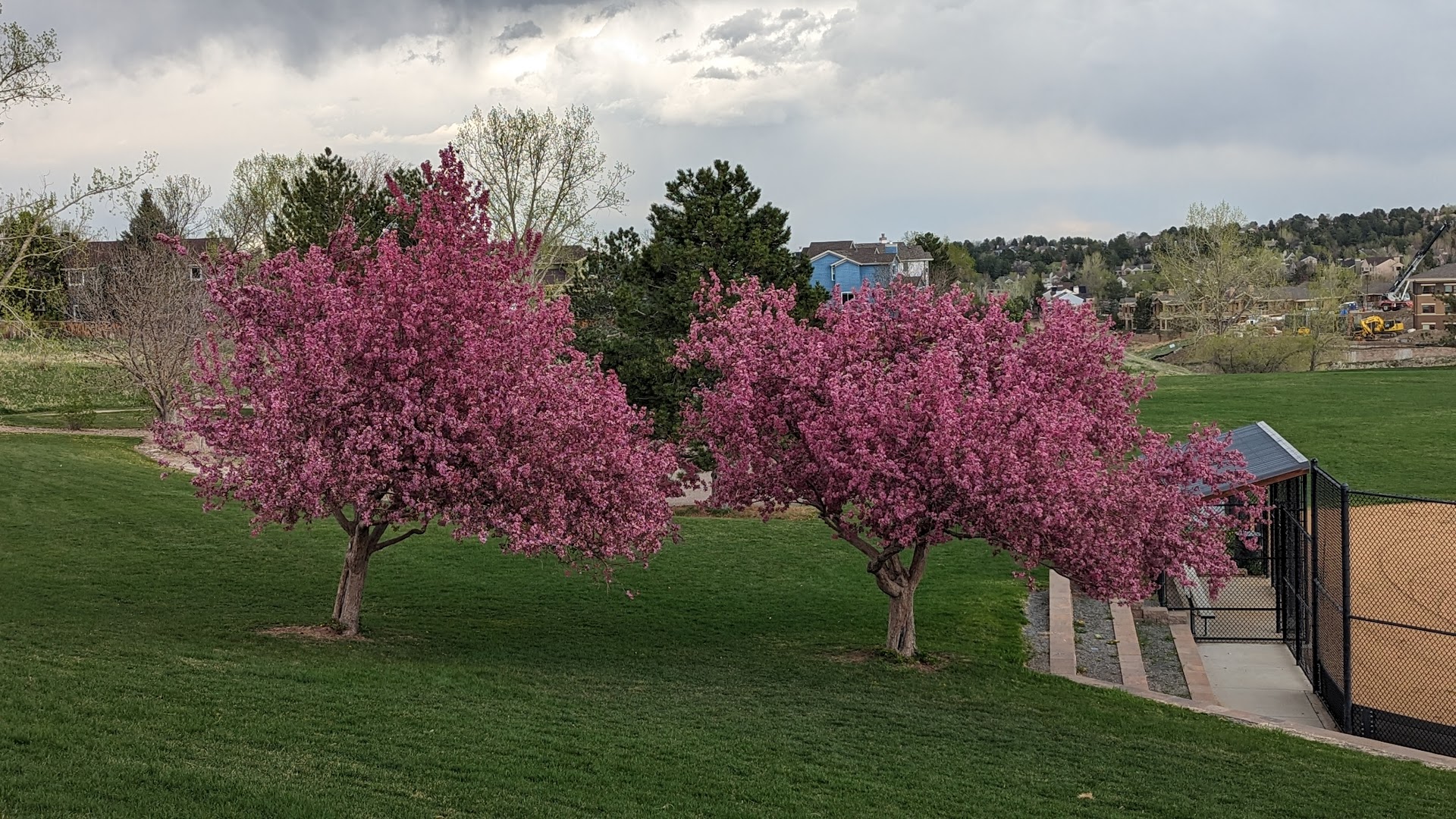 Toepfer Park offers a spacious outdoor escape in Highlands Ranch with well-maintained trails, a playground suitable for young children, baseball and soccer fields, and a basketball court. Visitors enjoy picnic tables, barbecue grills, clean restrooms, and dog-friendly areas spread across gently rolling hills with scenic views.