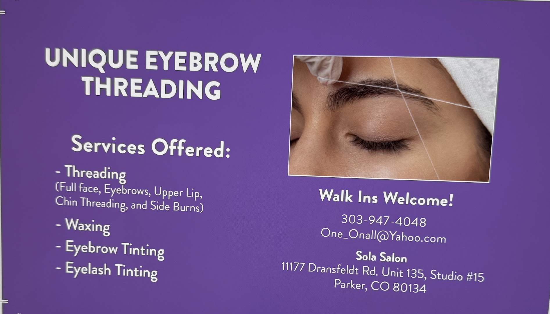 Unique Eyebrow Threading Parker specializes in eyebrow threading and waxing with attention to shape and detail for flattering results.