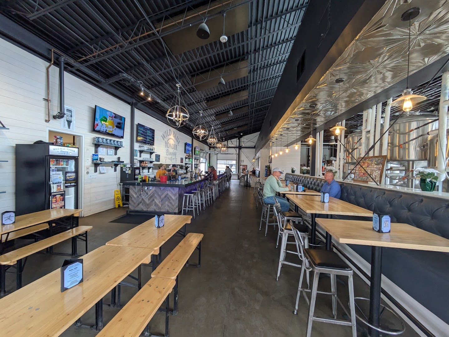 Wild Blue Yonder Brewing Co. offers patrons a polished yet inviting brewpub experience with 16 rotating taps featuring award-winning lagers, stouts, and creative seasonal sours. Guests can enjoy comfort food favorites such as truffle fries, cheese curds, and hearty burgers either inside a spacious indoor bar or on the pet-friendly patio.