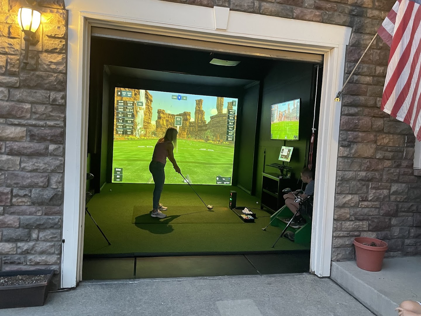 Indoor golf facility in Parker, CO offering simulator bays, practice options, and club fitting with Trackman technology.